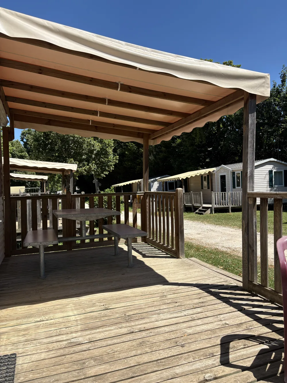 Les mobil-homes RIDOREV accueillent jusqu’à 4 personnes dans deux chambres séparées, avec sanitaires privatifs et cuisine équipée. Leur agencement optimisé et leur terrasse bois offrent un excellent compromis entre confort et simplicité, pour des vacances en famille ou entre amis dans un camping calme en bord de Saône.