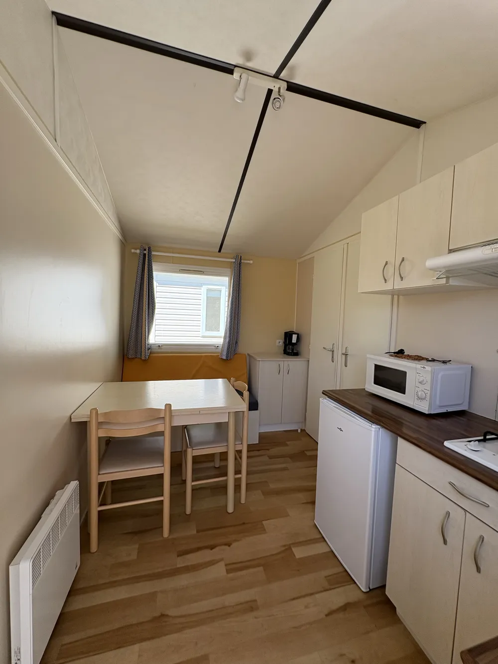 - Cuisine équipée : frigo top, plaques gaz, vaisselle de première nécessité, micro-onde & cafetière électrique
