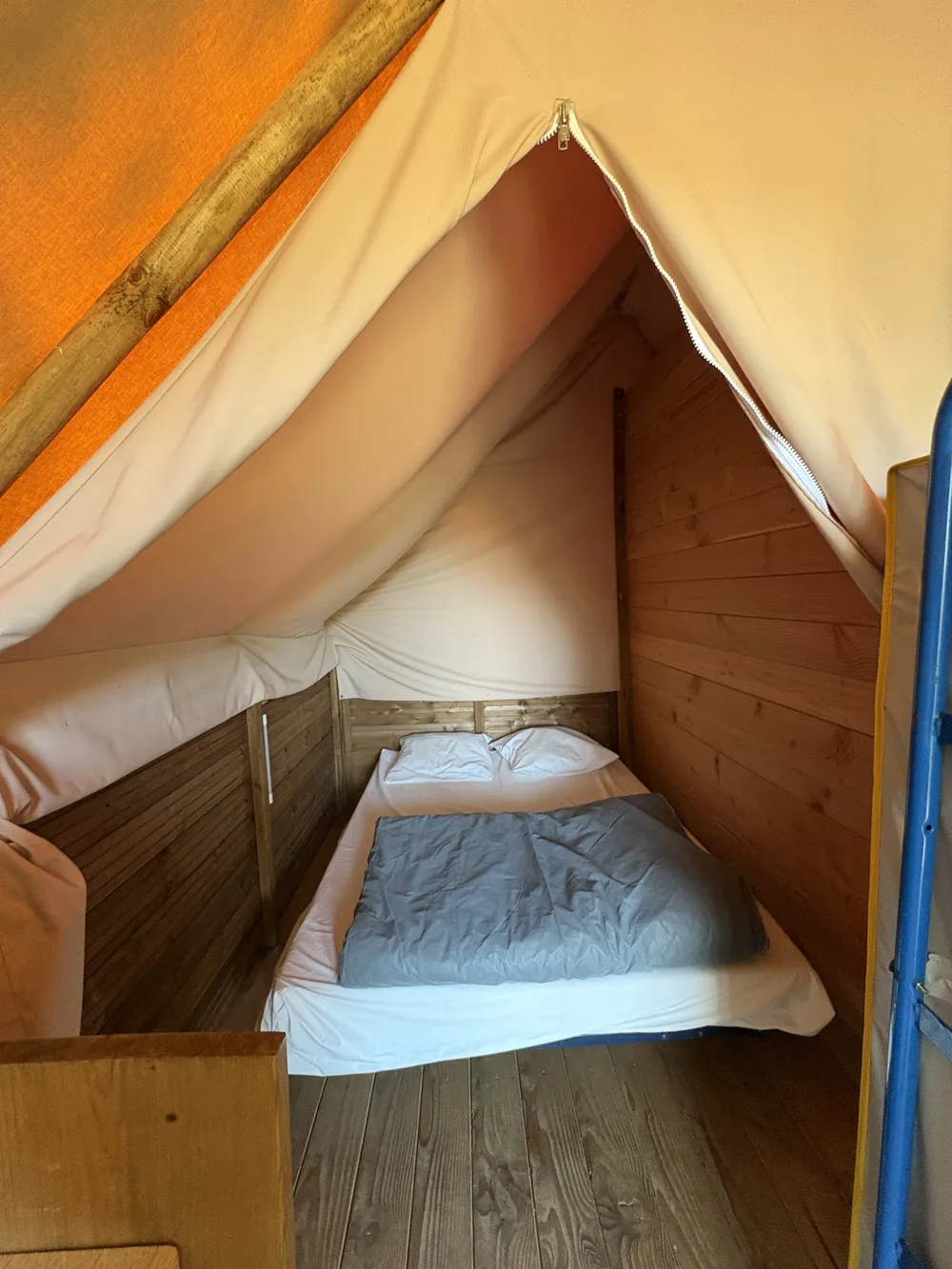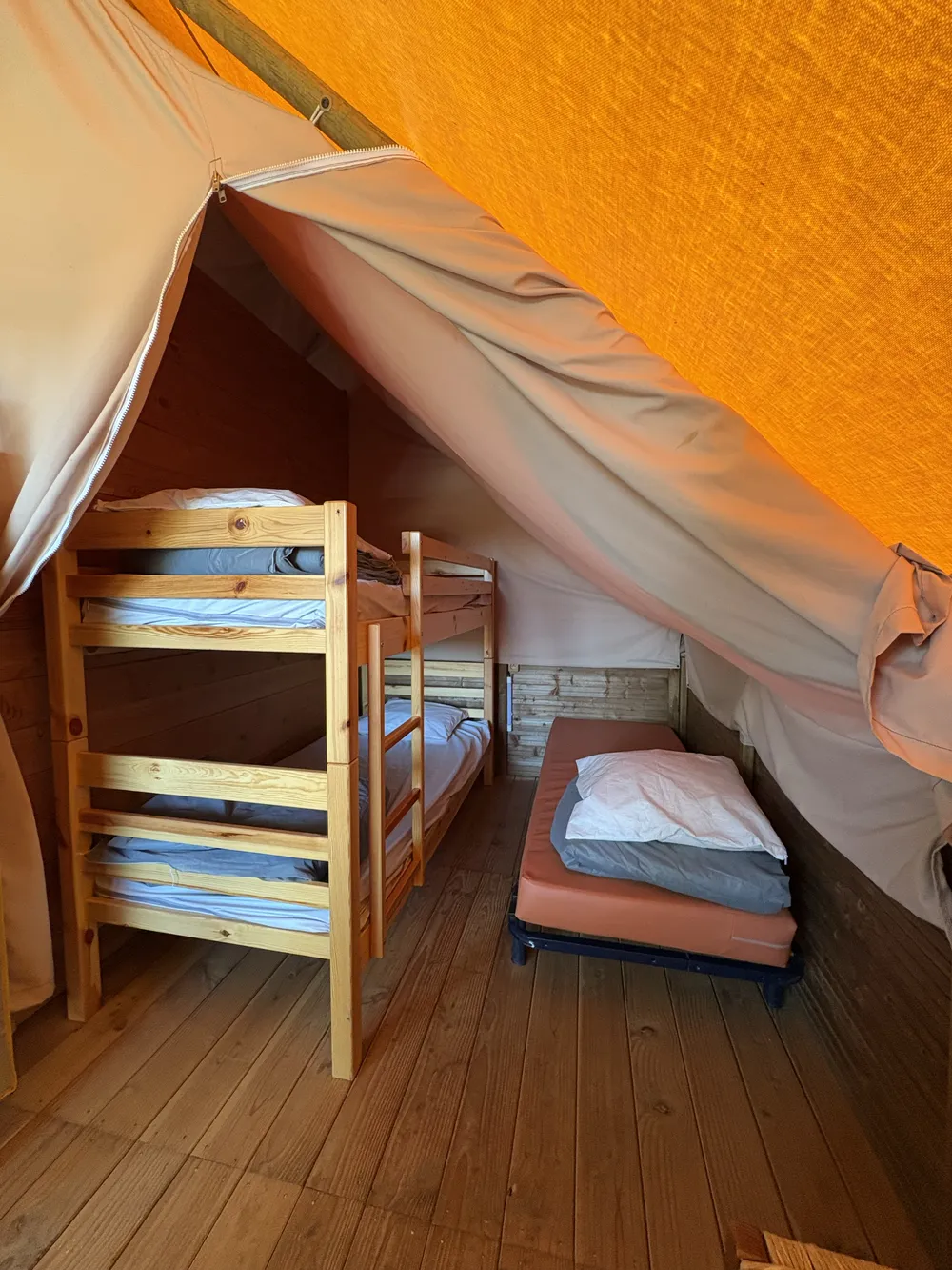 superficie de 20 m², elle combine le charme du camping traditionnel et le confort d’un hébergement aménagé, idéal pour une