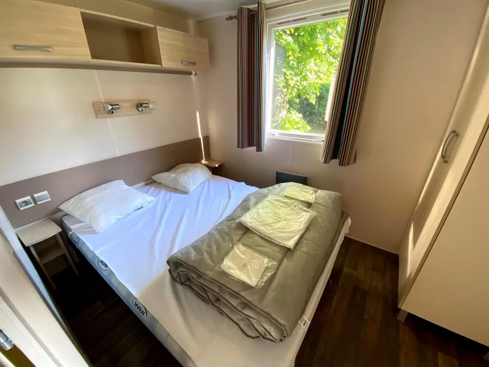 Ce mobil-home tout équipé dispose de deux chambres, d’un espace séjour lumineux, d’une banquette convertible, ainsi que d’une terrasse ombragée pour profiter pleinement des beaux jours au bord de la Saône.