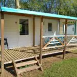 These TRIGANOS are mobile homes for 4 people (2 adults and 2 children), they are composed of two bedrooms and a common area including a dining area with a bench. You can also enjoy the good weather by dining or having an aperitif or by playing a board game with your children or friends on the shaded terrace.